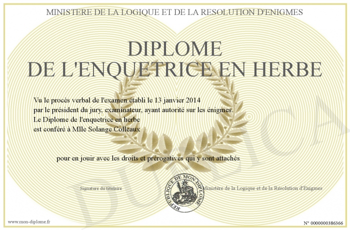 Envoyez par email votre Diplôme de l'enquetrice en herbe personalisé
