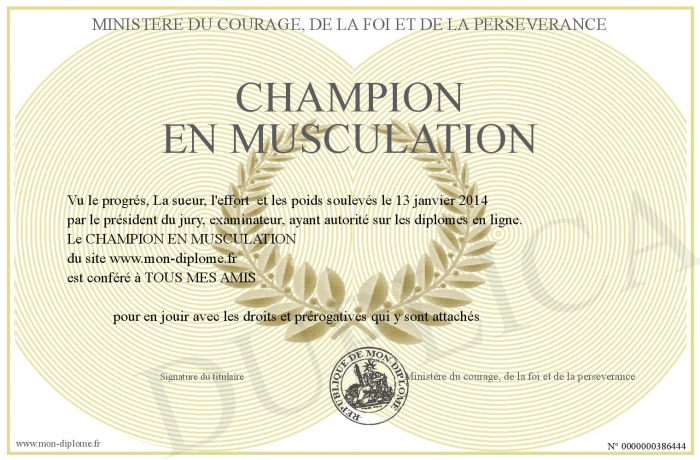 Envoyez par email votre CHAMPION EN MUSCULATION personalisé