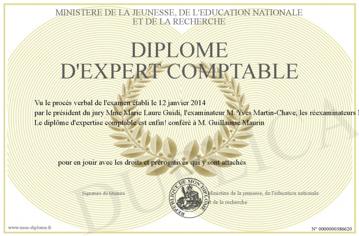 Envoyez par email votre Diplôme d'Expert Comptable personalisé