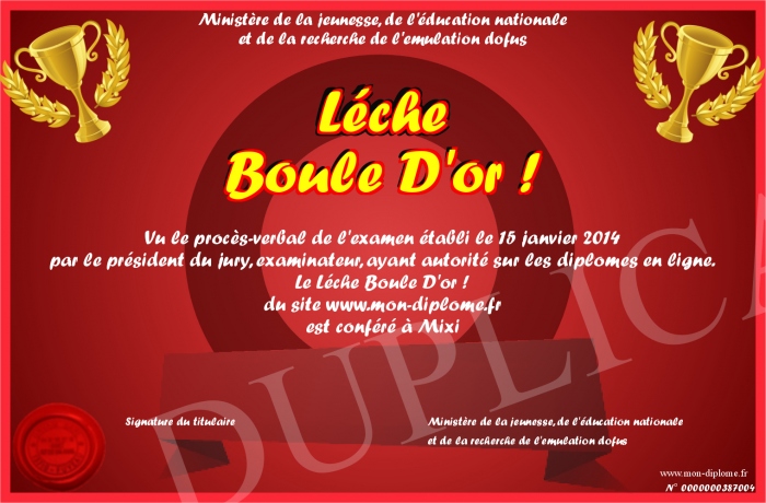 Envoyez par email votre Léche Boule D'or ! personalisé