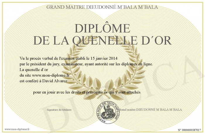 Envoyez par email votre DIPLÔME DE LA QUENELLE D´OR personalisé