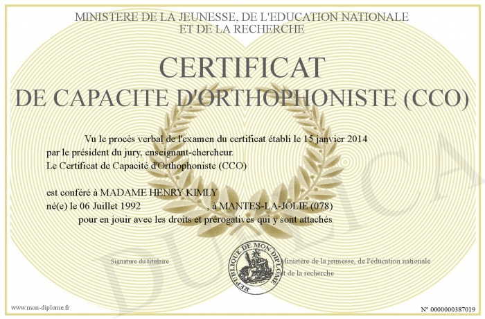 Envoyez par email votre Certificat de Capacité d'Orthophoniste (CCO) personalisé