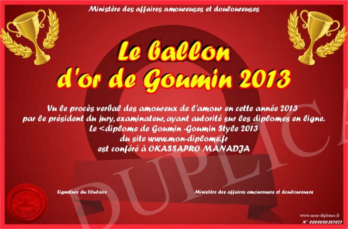 Envoyez par email votre Le ballon d'or de Goumin 2013 personalisé