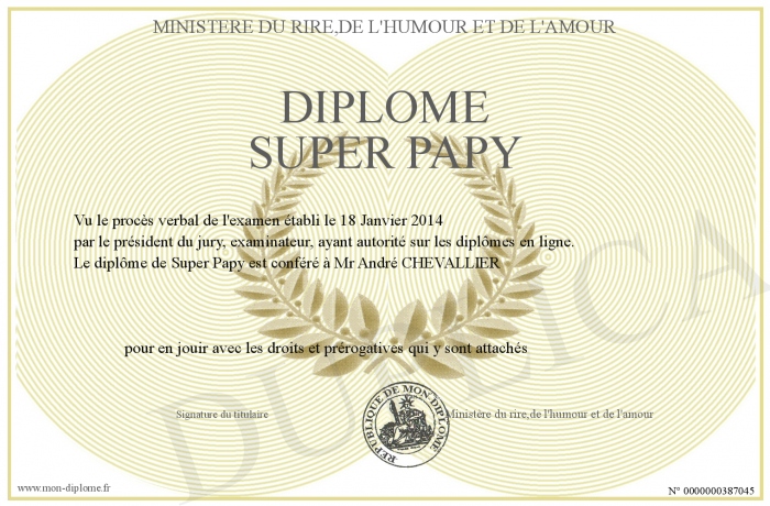 Envoyez par email votre Diplôme SUPER PAPY personalisé