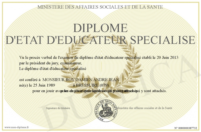Envoyez par email votre Diplôme d'état d'éducateur spécialisé personalisé
