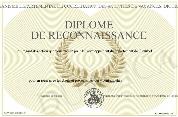 Envoyez par email votre Diplôme de Reconnaissance personalisé