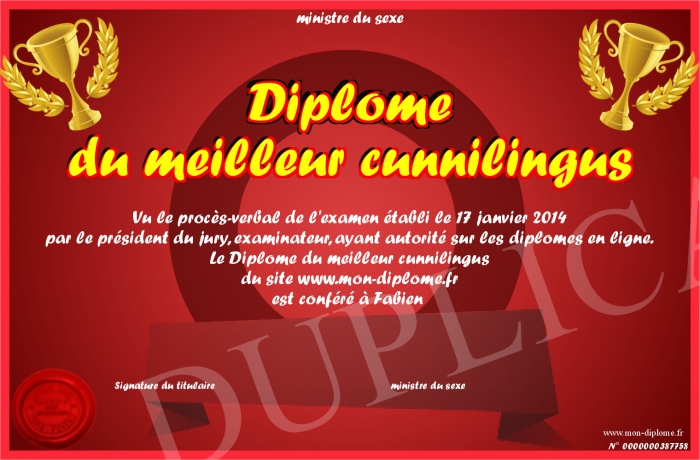 Envoyez par email votre Diplôme du meilleur cunnilingus personalisé
