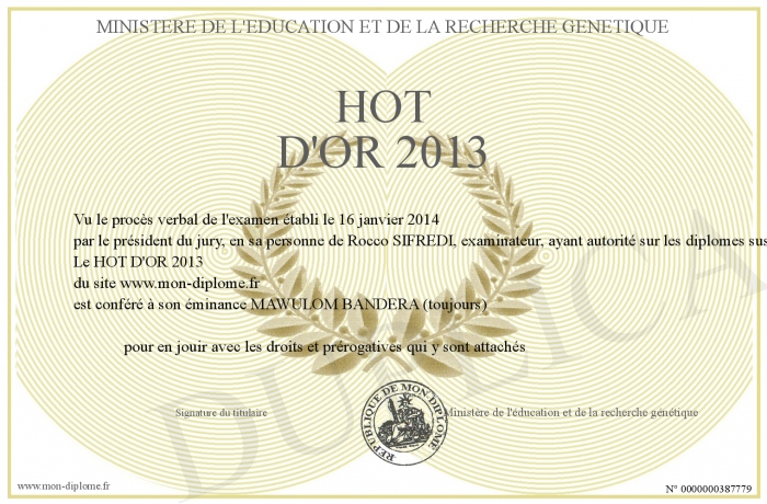 Envoyez par email votre HOT D'OR 2013 personalisé