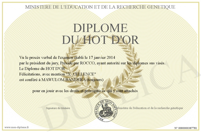 Envoyez par email votre Diplôme du HOT D'OR personalisé