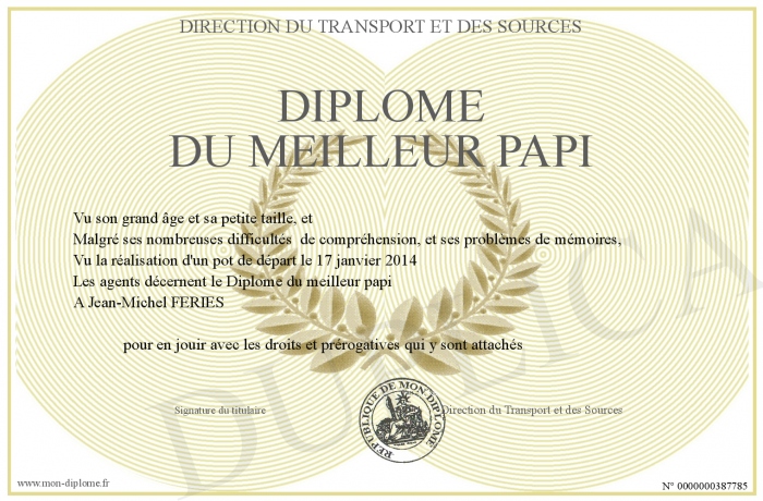 Envoyez par email votre Diplôme du meilleur papi personalisé