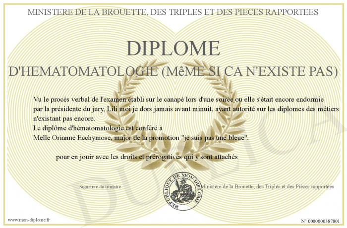 Envoyez par email votre Diplôme d'hématomatologie (même si ca n'existe pas) personalisé