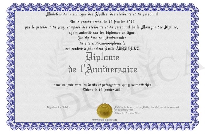Envoyez par email votre Diplôme de l'Anniversaire personalisé