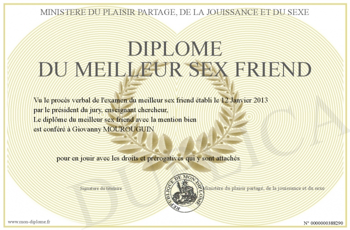 Envoyez par email votre Diplôme du meilleur sex friend personalisé