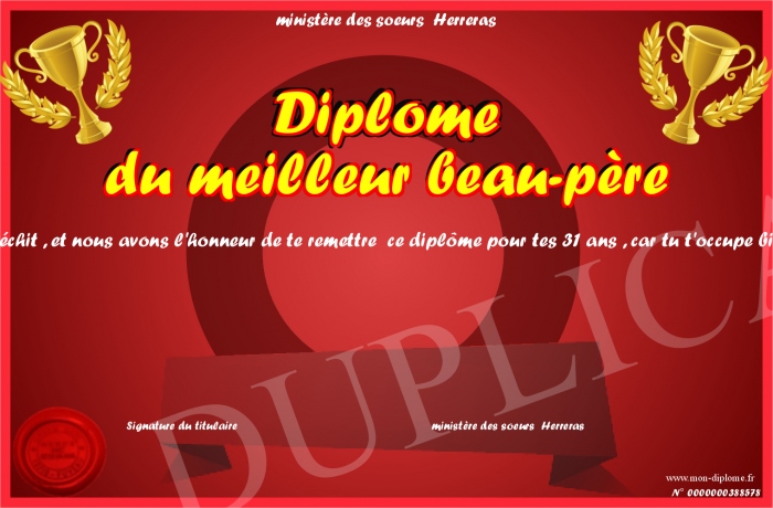 Envoyez par email votre Diplôme du meilleur beau-père personalisé