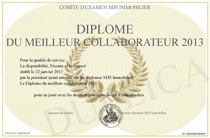 Envoyez par email votre Diplôme du meilleur collaborateur 2013 personalisé