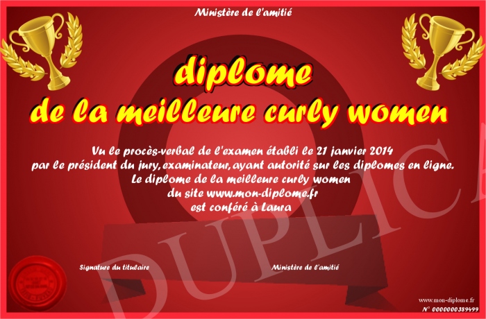 Envoyez par email votre diplôme de la meilleure curly women personalisé