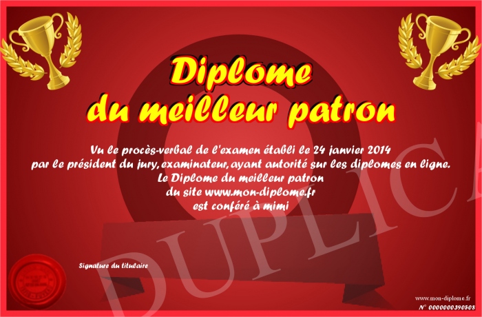 Envoyez par email votre Diplome du meilleur patron personalisé