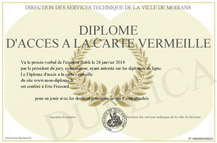Envoyez par email votre Diplôme d'accés a la carte vermeille personalisé