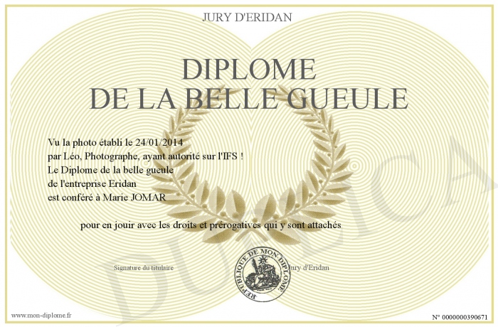 Envoyez par email votre Diplôme de la belle gueule personalisé