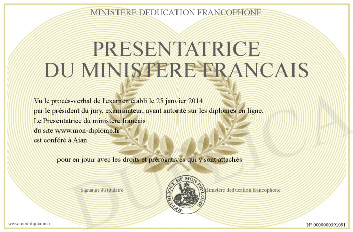 Envoyez par email votre Presentatrice du ministere francais personalisé