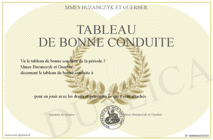 Envoyez par email votre Tableau de bonne conduite personalisé