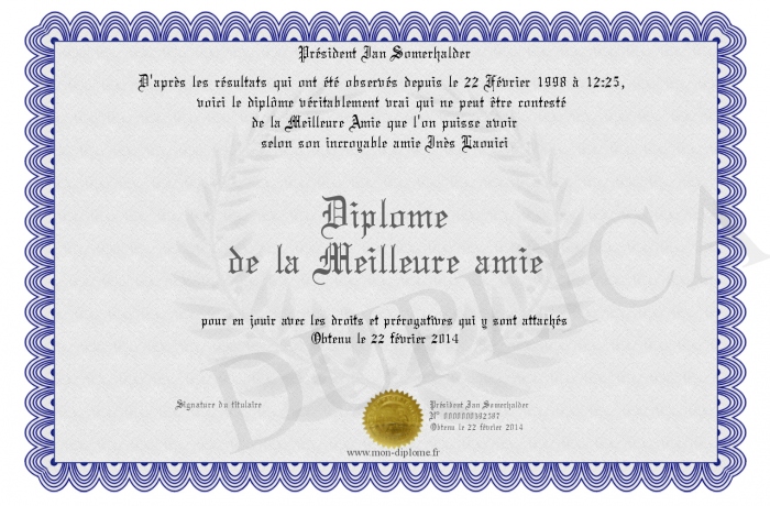 Envoyez par email votre Diplôme de la Meilleure amie personalisé