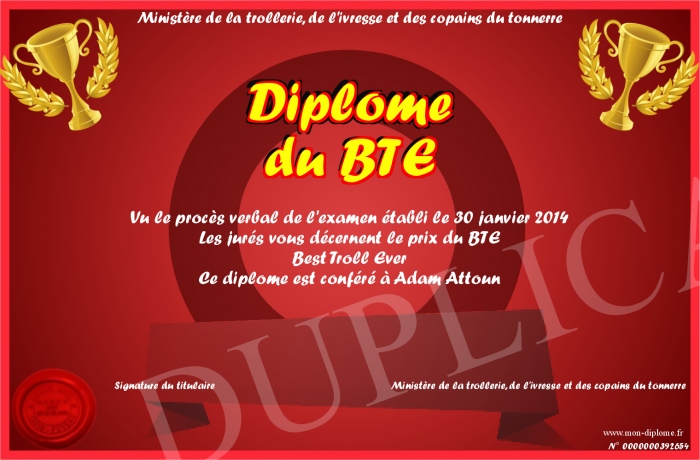 envoyé par le Ministère de la trollerie, de l'ivresse et des copains du tonnerre !