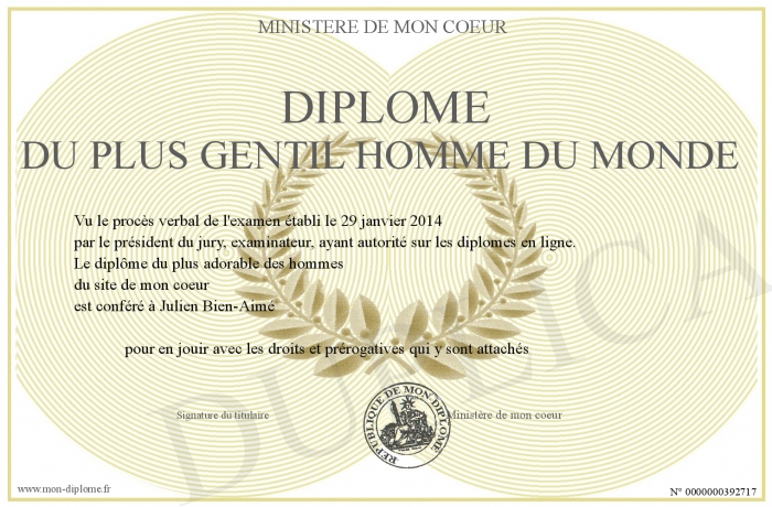 Envoyez par email votre Diplôme du plus gentil homme du monde personalisé