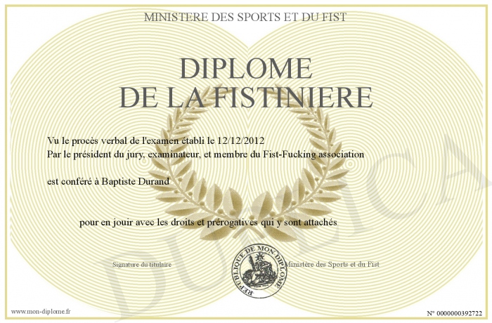 Envoyez par email votre Diplôme de La Fistinière personalisé
