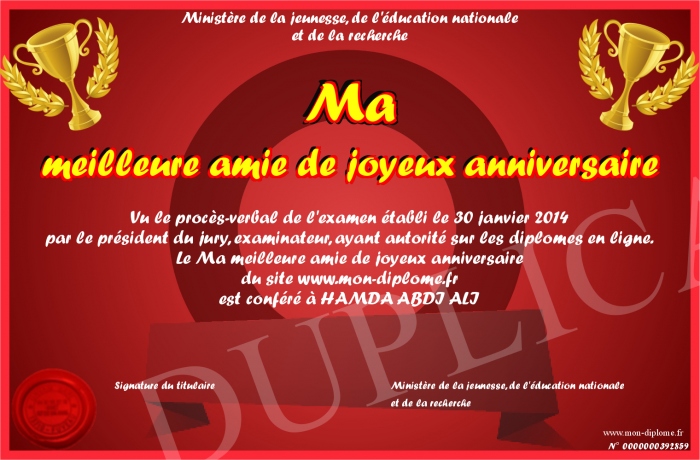 Envoyez par email votre Ma meilleure amie de joyeux anniversaire personalisé