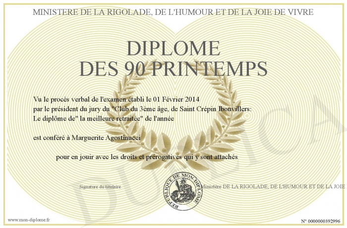 Envoyez par email votre Diplôme DES 90 PRINTEMPS personalisé