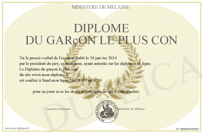 Envoyez par email votre Diplôme du garçon le plus con personalisé