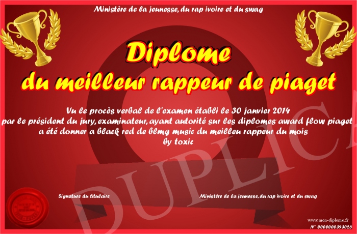 Envoyez par email votre Diplôme du meilleur rappeur de piaget personalisé