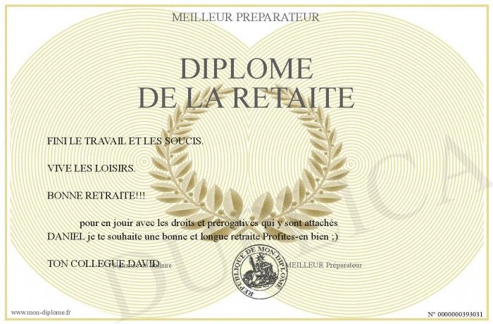Envoyez par email votre Diplôme DE LA RETAITE personalisé