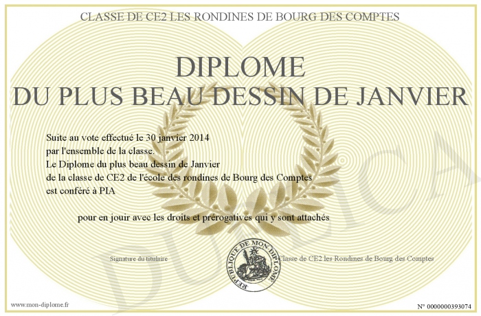 Envoyez par email votre Diplôme du plus beau dessin de Janvier personalisé