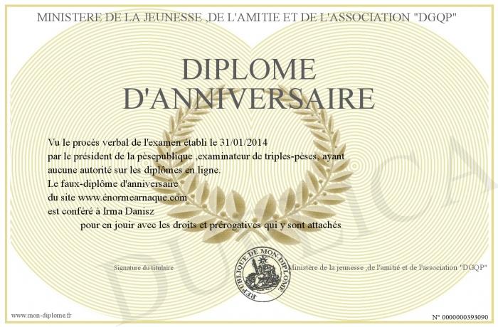Envoyez par email votre Diplôme d'anniversaire personalisé