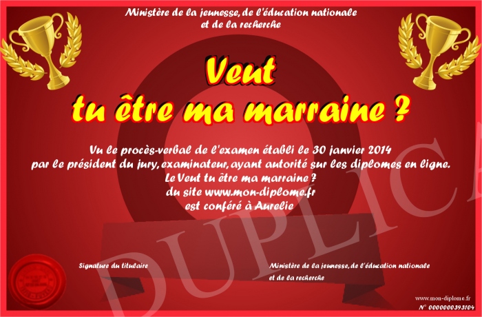 Envoyez par email votre Veut tu être ma marraine ? personalisé