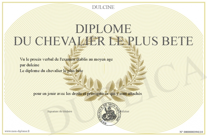 Envoyez par email votre diplome du chevalier le plus bete personalisé