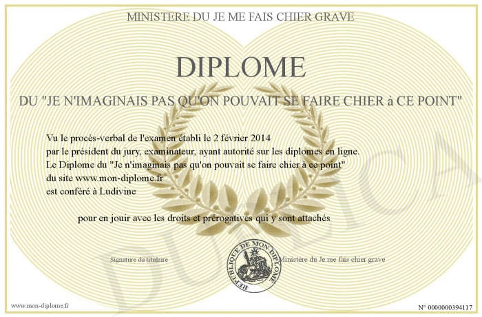 Envoyez par email votre Diplôme du -Je n'imaginais pas qu'on pouvait se faire chier à ce point- personalisé