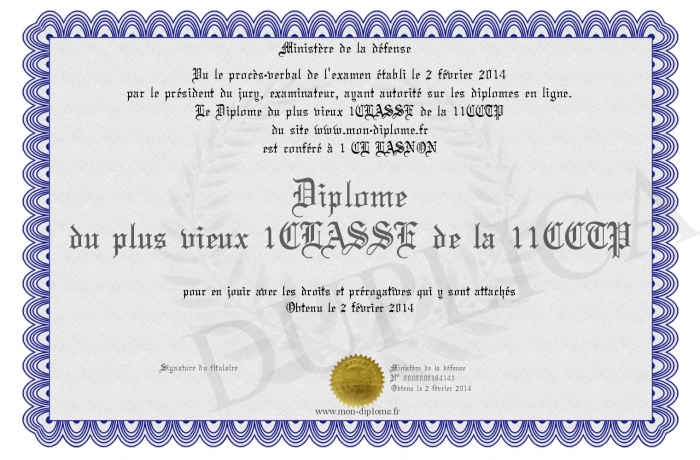 Envoyez par email votre Diplôme du plus vieux 1CLASSE de la 11CCTP personalisé