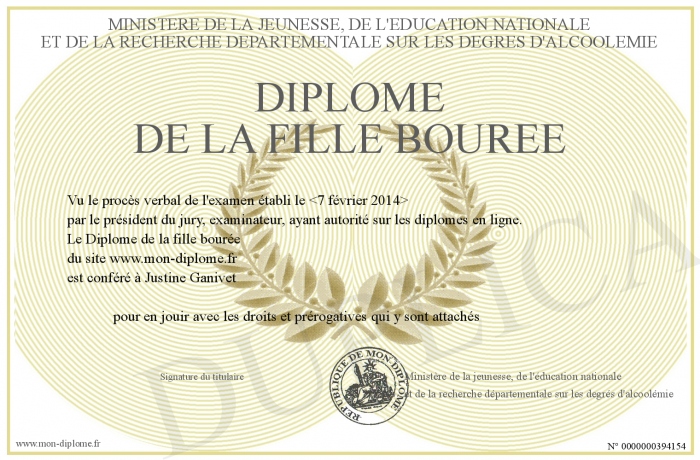 Envoyez par email votre Diplôme de la fille bourée personalisé