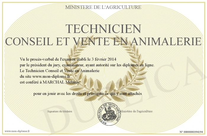 Envoyez par email votre Technicien Conseil et Vente en Animalerie personalisé