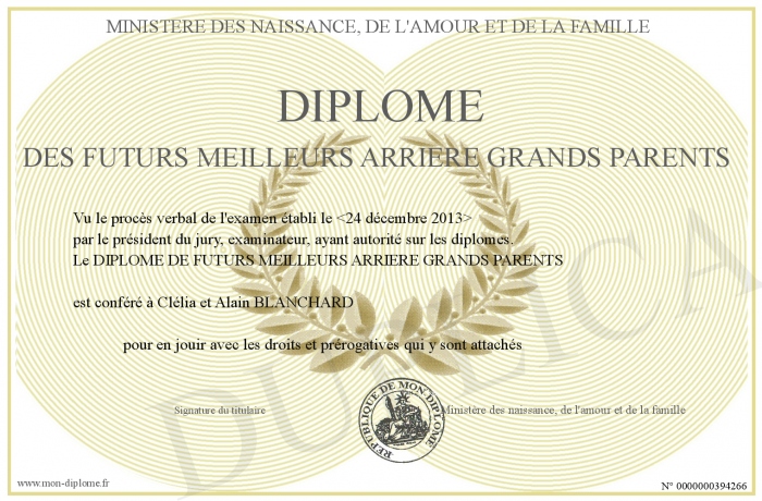 Envoyez par email votre Diplôme des futurs meilleurs arrière grands parents personalisé