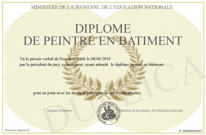 Envoyez par email votre Diplôme de peintre en batiment personalisé