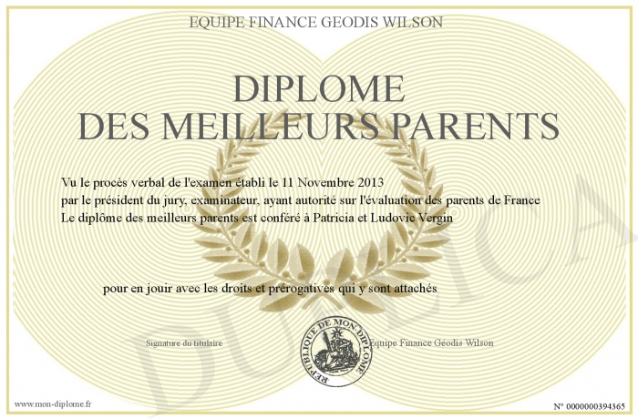 Envoyez par email votre Diplôme des meilleurs parents personalisé