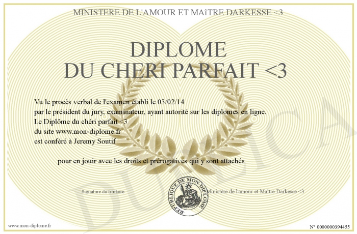 Envoyez par email votre Diplôme du chéri parfait -3 personalisé