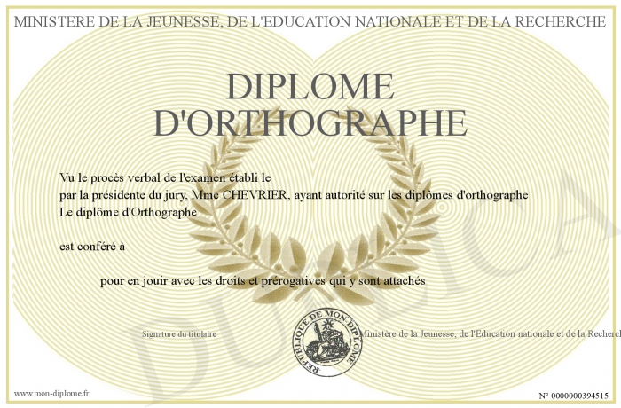 Envoyez par email votre Diplôme d'Orthographe personalisé