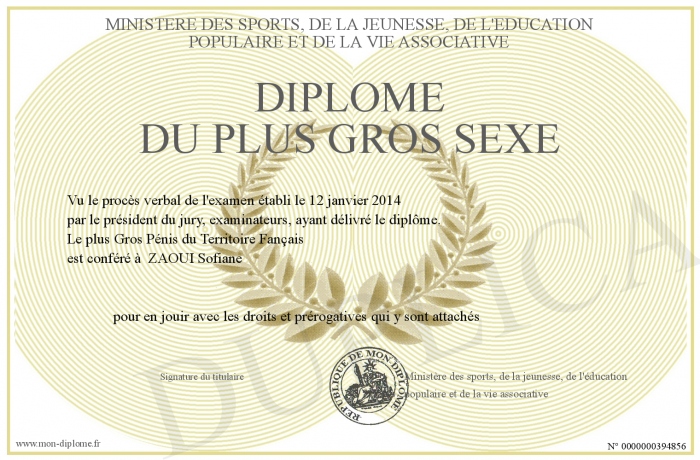 Envoyez par email votre Diplôme du Plus Gros sexe personalisé