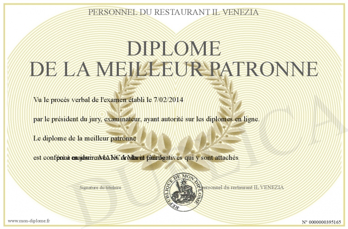 Envoyez par email votre Diplôme de la meilleur patronne personalisé