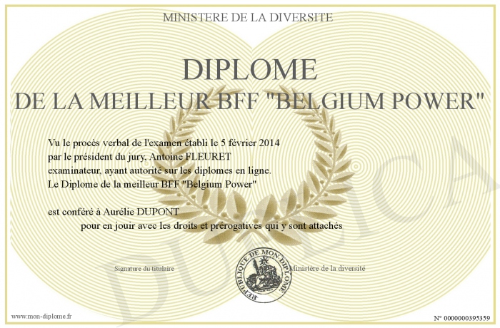 Envoyez par email votre Diplôme de la meilleur BFF -Belgium Power- personalisé